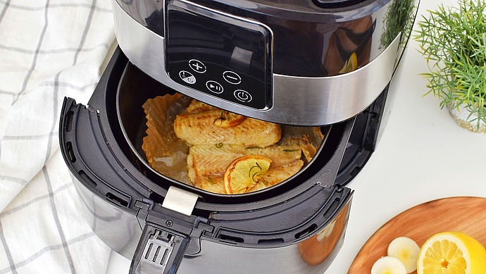 Die Heißluftfritteuse ist die schlanke Alternative zur klassischen Fritteuse. Statt in Öl garen beispielsweise Pommes, Gemüse oder Hähnchen hier mit heißer Luft, ähnlich wie im Umluftofen, nur schneller und oft knuspriger. Ob schnelle Snacks oder vollwertige Mahlzeiten: Mit der Heißluftfritteuse gelingen viele Gerichte im Handumdrehen und mit deutlich weniger Fett.