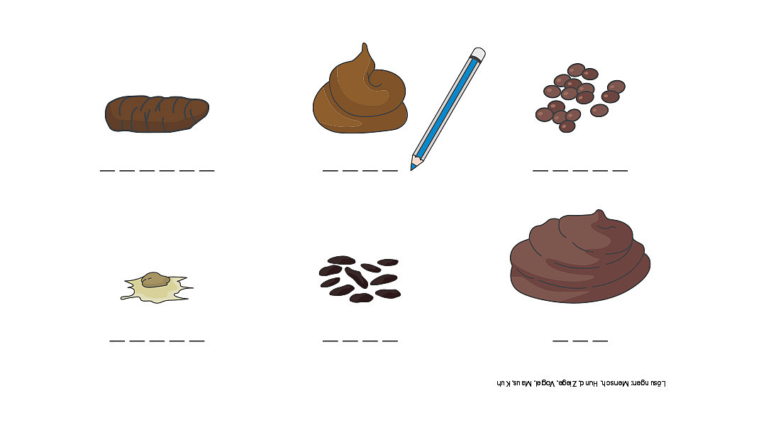 Und übrigens: Nicht nur wir gehen auf Toilette und müssen pupsen – auch die Tiere tun das. Rehe zum Beispiel machen kleine dunkle Kügelchen, die fast wie Schokodrops aussehen (aber bitte nicht probieren!). Bei uns Mäusen sind es auch kleine längliche Köttel, wie braune Reiskörner. Elefanten und Kühe dagegen hinterlassen richtig große Fladen – manchmal so groß wie ein Teller! Hunde machen ähnliche Häufchen wie Menschen. Und Vögel? Die machen Pipi und Kacka gleichzeitig: Das sieht weiß und flüssig aus und landet manchmal genau da, wo man es nicht haben will … Habt ihr das auch schon mal irgendwo gesehen? Vielleicht auf eurer Fensterscheibe?